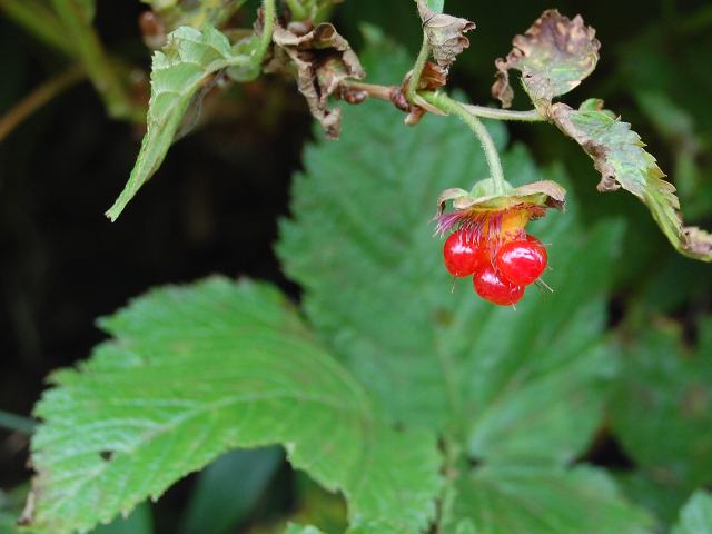 紅花苺(ベニバナイチゴ)の実が撮れたのも収穫であった。